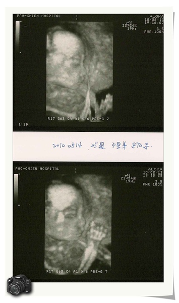 昨天是產檢的日子,小寶弟已經25周囉!現在870G,醫生說有比正常體重大一點,但是沒關係,總比體重輕好。昨天拍的是三D的,看的滿清楚的唷!